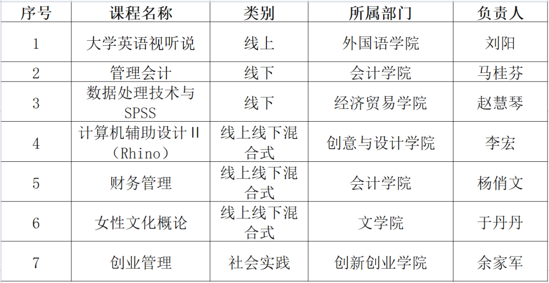 依据《广东省教育厅关于开展2021年度省一流本科课程遴选认定工作的通知》文件精神,我处组织了2021年度省级一流本科课程申报推荐工作。经校外专家和教学指导委员会评审,拟推荐1门线上一流课程、2门线下一流课程、3门线上线下混合式一流课程、1门社会实践一流课程申报省级一流本课程。现将拟推荐名单予以公示(见附件)。