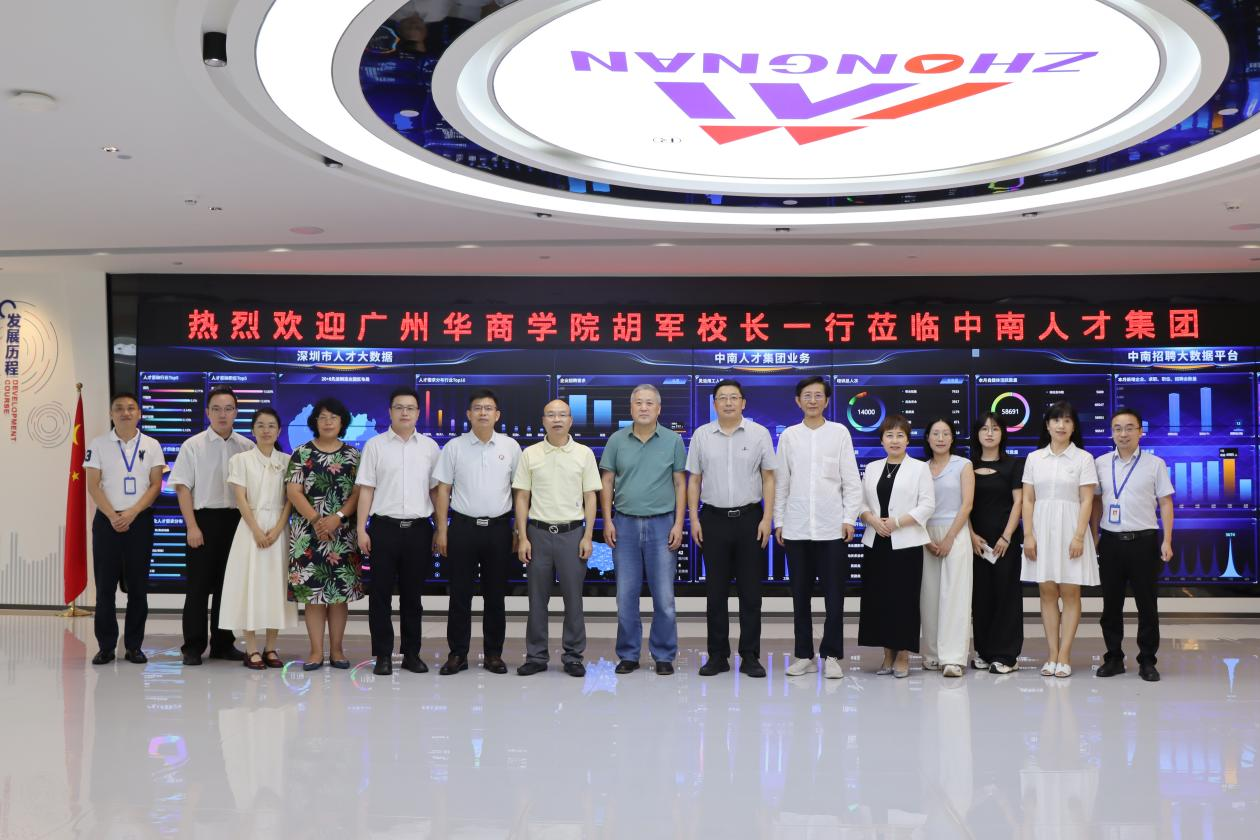 会议伊始,杨杰董事长率相关负责人陪同胡军校长一行参观中南人才集团,直观展示集团服务产业人才的运营场景、业务布局及核心资源优势,为后续深入交流奠定基础。