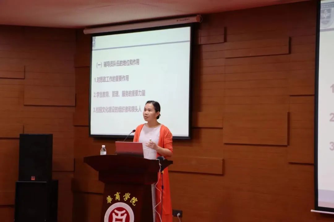 10月9日上午,学生处在广州校区图书馆报告厅举办“辅导员职业发展”主题培训。本次讲座特别邀请了广东财经大学董锦红老师为全体辅导员进行专业指导和经验分享。学校副校长许娜、学生处处长黄国富、各二级学院学工主任、全体辅导员以及学生处全体干部参加讲座,肇庆校区辅导员和学工办线上参会。