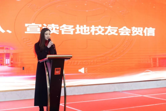 ▲会计学院校友会代表何燊怡宣读贺信