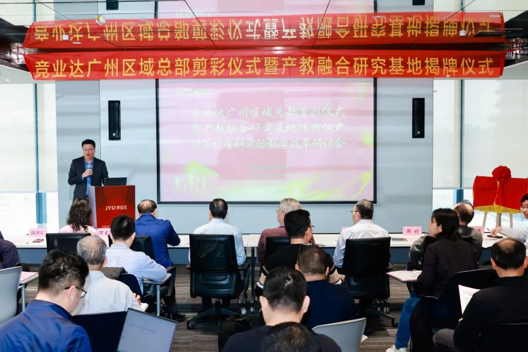 广东省计算机学会领导、广东省高等教学学会领导、广东省各高校计算机相关专业学院的领导与教师代表、职校计算机相关专业学院的领导与教师代表、计算机相关专业合作企业代表出席盛会,此次会议还有另外一个主题是北京竞亚达数码科技股份有限公司产教融合研究基地揭牌仪式与北京竞亚达数码科技股份有限公司广州区域总部乔迁仪式。此次会议由北京竞亚达数码科技股份有限公司实验教学与产教融合BU副总裁李朝辉、北京竞亚达数码科技股份有限公司副总裁李文波主持。