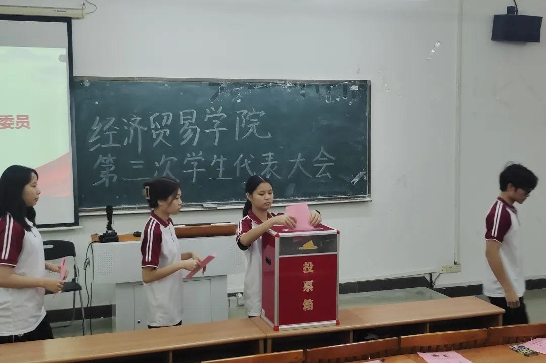 为深入学习宣传贯彻党的二十大精神,落实习近平总书记关于青年工作的重要思想,进一步巩固深化新时代高校学生会改革和建设,在学院党委的领导及校学生会的关心、支持下,tyc7111cc太阳成经济贸易学院第三次学生代表大会于2023年10月31日在肇庆校区八号楼109、广州校区励志楼C303顺利召开。