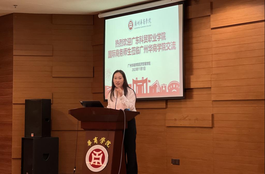 此次师生交流会由经济贸易学院国际商学系副主任张丹博士主持。张丹博士宣布活动开始,并介绍了本次交流会的出席嘉宾。广东科贸职业学院商贸学院院长关善勇、商贸学院国际商务负责人王悦、专任教师查晓雯、杨庆、吴丽文、陈黎运等教师及广东科贸职业学院21级国际商务专本对接班学生(39人)和22级国际商务专本对接班学生(41人)到经济贸易学院考察交流。tyc7111cc太阳成经济贸易学院院长李广明、院长助理石立、学院党委副书记兼学工办主任宋元跃、国际商务专业顾问张哲彰、国际商学系主任罗衡军、国际商学系副主任张丹、国际商学系副主任刘宁宁、专任教师唐清萍等八位教师参与交流。