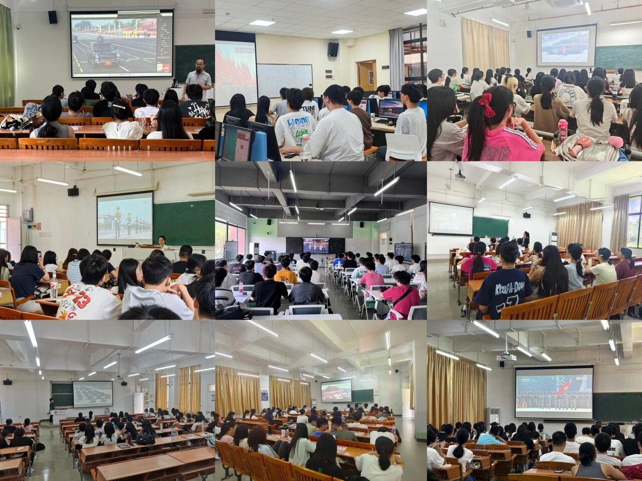 历史的回声,穿越80载峥嵘岁月,依然铿锵铮鸣。我校高度重视此次重要纪念活动,提前部署,精心组织,通过集中观看和自行观看相结合的形式,设立华商国际会议中心大礼堂等五个会场,实现万人齐看的壮观场面,为广大师生上了一堂生动而深刻的“开学第一课”。师生共同回顾那段艰苦卓绝、波澜壮阔的光辉岁月,深刻缅怀革命先烈,感悟伟大抗战精神。