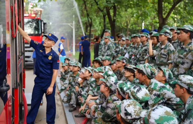 在紧随其后的消防知识宣讲与技能培训中,消防官兵围绕“提拔握压”四字要诀,现场示范并指导了干粉灭火器的正确使用方法。此外,活动还设置了消防车辆装备参观、模拟火场沉浸式体验等环节,让同学们得以近距离了解消防设备,并在高度仿真的环境中巩固逃生技能。整场活动将知识宣讲与实操实训深度结合,切实增强了新生应对火灾的自救互救能力,为构建“人人关心消防、人人参与消防”的平安校园奠定了坚实基础。