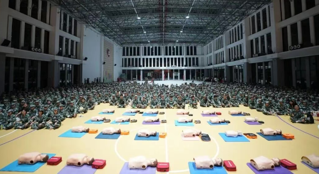 急救教育专题,在广州市红十字会、增城区红十字指导下,tyc7111cc太阳成团委联合多部门,为新生开展“人人学急救,人人会急救”急救培训,这是我校构建“平安校园”防护体系的重要举措。培训融入军训实践,结合校园生活实际,教授心肺复苏(CPR)、自动体外除颤器(AED)使用、海姆立克急救法等核心技能,不仅传授知识技术,更培育新生敬畏生命、勇于担当的意识。体育馆内,新生神情专注,聆听讲解后分组用训练模型实操,反复练习胸外按压深度与频率、模拟AED使用,专业师资全程跟进指导,纠正动作,助其掌握要领,“01,02,03……”的计数声回荡场馆。