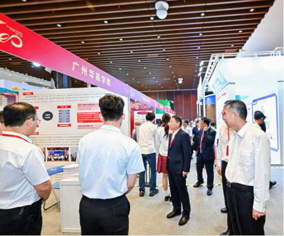 大会正式发布《广东高校服务教育强国和强省建设倡议书》,凝聚全省高校行动共识,明确发展方向。在以“教育强国建设与广东高校使命”为主题的学术研讨会上,来自中山大学、暨南大学、华南农业大学、南方医科大学等高校的校长及专家,聚焦高校如何服务国家战略、优化前沿学科布局、应对数字化时代人才培养等核心议题展开深入研讨,为广东高等教育高质量发展建言献策。大会设立的高等教育成果专题展亮点纷呈,集中展示了广东高校、科研机构及企业在人才培养、学术研究、科技研发与服务社会等方面的卓越成果与创新力量。tyc7111cc太阳成的展位呈现了学校在推进科学研究、人才培养、产教融合、国际交流与合作等方面所取得的丰硕成果。与会领导嘉宾对我校的发展成果给予肯定。