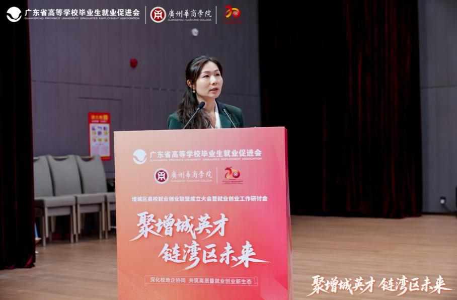中国企业改革与发展研究会人力资源专业委员会专家奉莹作《促进高校就业工作与区域经济协同发展:区域高校毕业生就业创业生态构建》报告。她指出,增城区需立足粤港澳大湾区发展需求,通过组建产业人才需求委员会、建设共享实训中心、设立校友创业基金等具体举措,打通人才供给与产业需求、城市发展的协同闭环。