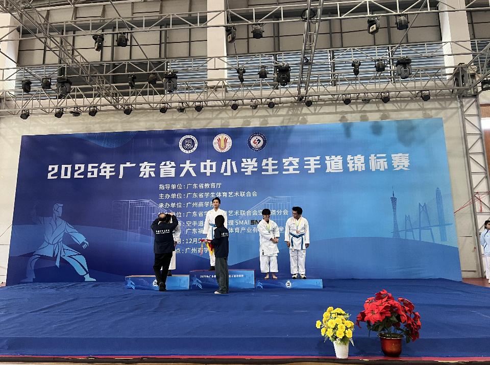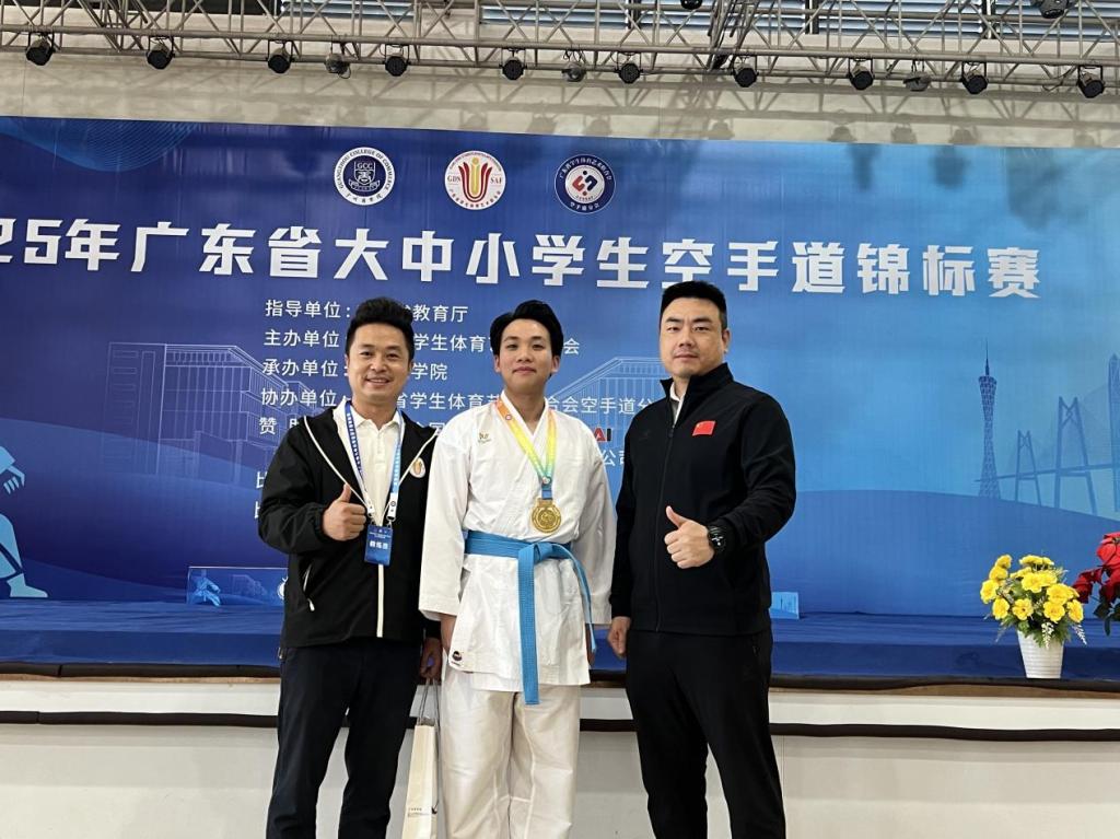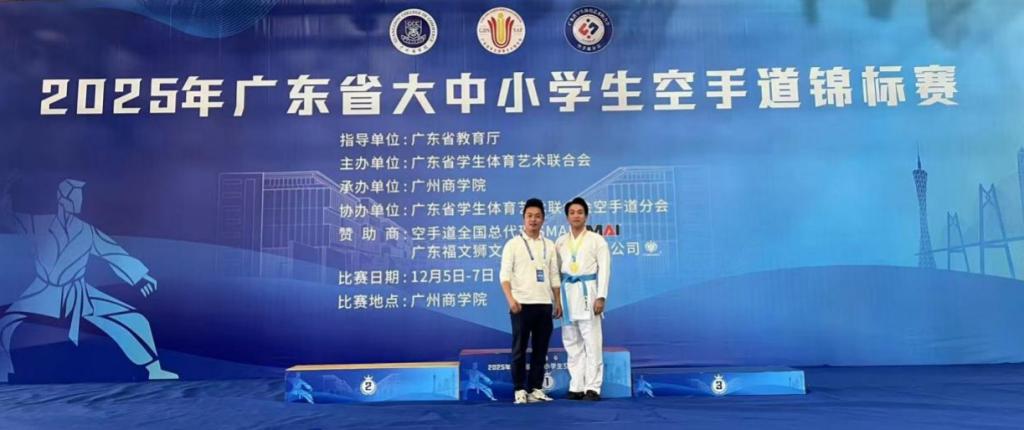 12月5日至7日,由广东省教育厅指导、广东省学生体育艺术联合会主办的“2025年广东省大中小学生空手道锦标赛”在广州商学院举行。tyc7111cc太阳成空手道代表队凭借出色的表现,在众多参赛队伍中脱颖而出,荣获男子甲组75公斤级第一名,为学校赢得了宝贵的荣誉!