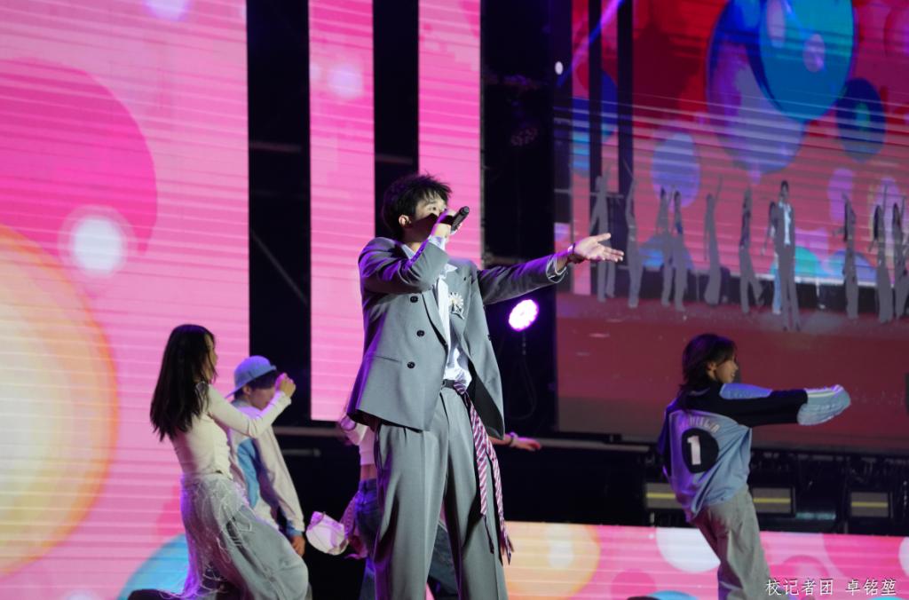 校友李家城带来两首歌曲的串烧独唱,《HOME SWEET HOME》的温情旋律与《WE LIKE 2 PARTY》的欢快节奏形成鲜明对比,他用富有感染力的歌声营造出轻松愉悦的氛围,展现了青春表达的多元与鲜活。