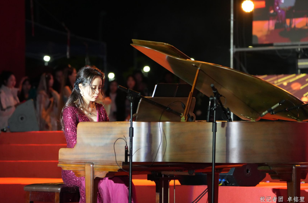 钢琴独奏《浏阳河》旋律婉转悠扬,经典曲目被演绎得韵味十足;随后教职工合唱团唱响《我爱你中国》,激昂有力的歌声满含赤诚,将浓浓的家国情怀传递给线上线下的每一位观众。