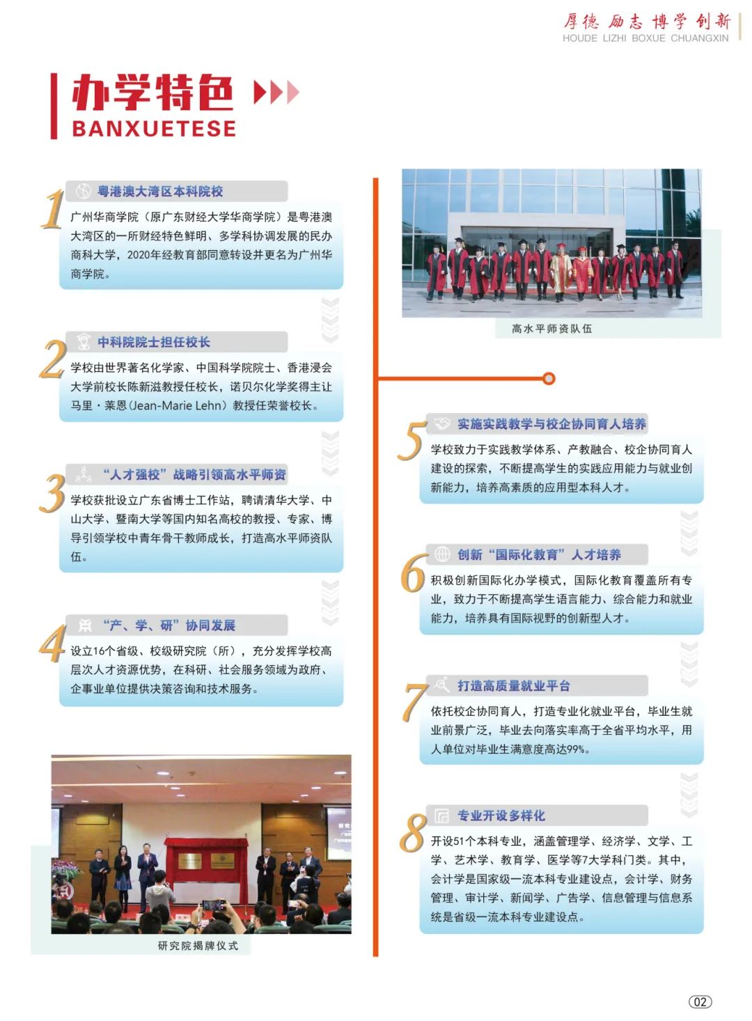 学校是粤港澳大湾区一所以“华商文化”和“融合育人”为特色的民办商科大学,也是一所多学科融合和协调发展的地方性、应用型本科院校。学校现有广州校区和肇庆校区,分别坐落在风景秀丽的“荔枝之乡”广州增城和素有“中国玉器之乡”美誉的肇庆四会;校园占地面积一千多亩,目前在校本科生3万多人。