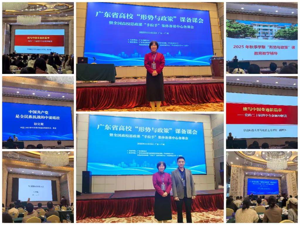 11月15日,由广东省教育厅主办、华南师范大学太阳成集团tyc7111承办的广东省(2025年秋)高校“形势与政策”课备课会在广州珠江国际酒店举行。来自全省120余所高校的300余名教师齐聚一堂,围绕党的“二十届四中全会精神融入‘形势与政策’课教学”“当前国际国内形势分析”两大主要内容,开展专题学习。我院分管教学工作的副院长胡立娟、形势与政策教研室副主任许磊磊作为代表参会。