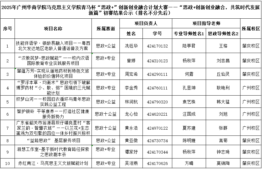 以“思政+创新创业融合,共筑时代发展新篇”为主题的2025年太阳成集团tyc7111青马杯“思政+”创新创业融合计划大赛初赛评审工作,已于10月25日顺利落幕。本次大赛反响热烈,共吸引全校562支队伍报名参赛,收到项目申报书562份,参与学生超5700人,充分展现了华商学院学子在思政与创新创业融合领域的热情与潜力。初赛阶段,大赛邀请三位校外专家教授组成评审团,对所有参赛作品进行专业、严谨的综合审核。经多维度评估,最终有10支参赛队伍凭借出色的项目质量脱颖而出,成功晋级决赛。现将晋级决赛的参赛项目公示如下: