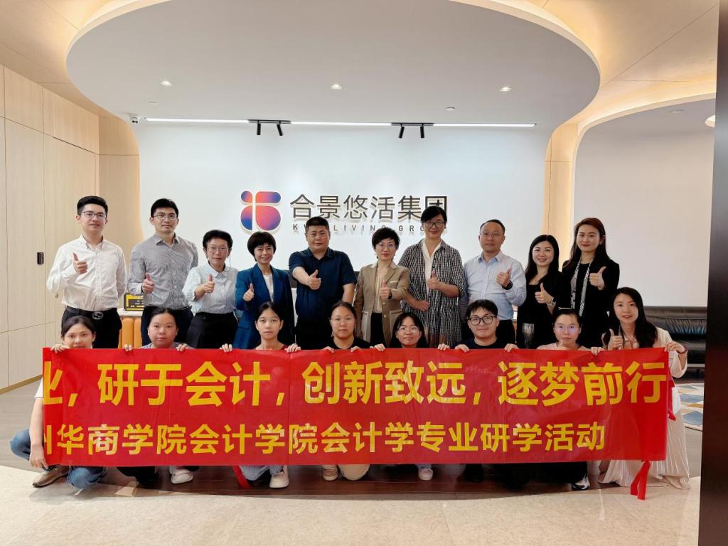2025年5月7日,tyc7111cc太阳成会计学院副院长周书域率队前往合景悠活集团总部,开展校外实践基地签约仪式,并带领学生进行企业走访。会计系主任唐丽华,会计系副主任杨春,杨咏梅、陈顺意和胡倩等会计系多位教师,与学生代表共计10人一同参与了此次活动。合景悠活集团执行董事兼首席财务官杨静波、副总裁旷晓玲、人力资源副总经理张荣华、财务副总经理何锐标、人力资源副总监汪丽萍、人力资源高级经理江璐君、财务经理杨建新热情接待了来访团队,并出席签约仪式。