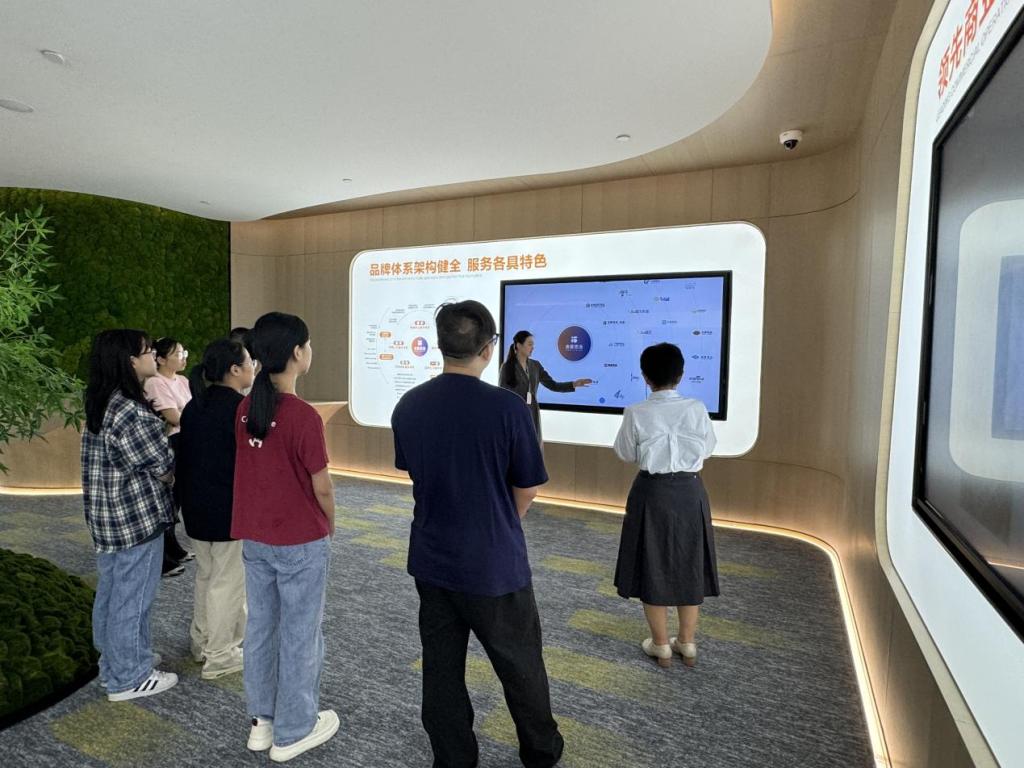 活动伊始,在品牌馆讲解员的引领下,会计学院师生们参观了合景悠活集团品牌馆。通过讲解员的详细介绍,大家深入了解了合景悠活集团的发展历程、品牌理念以及业务布局,对集团的整体架构和运营模式有了初步的认识。
