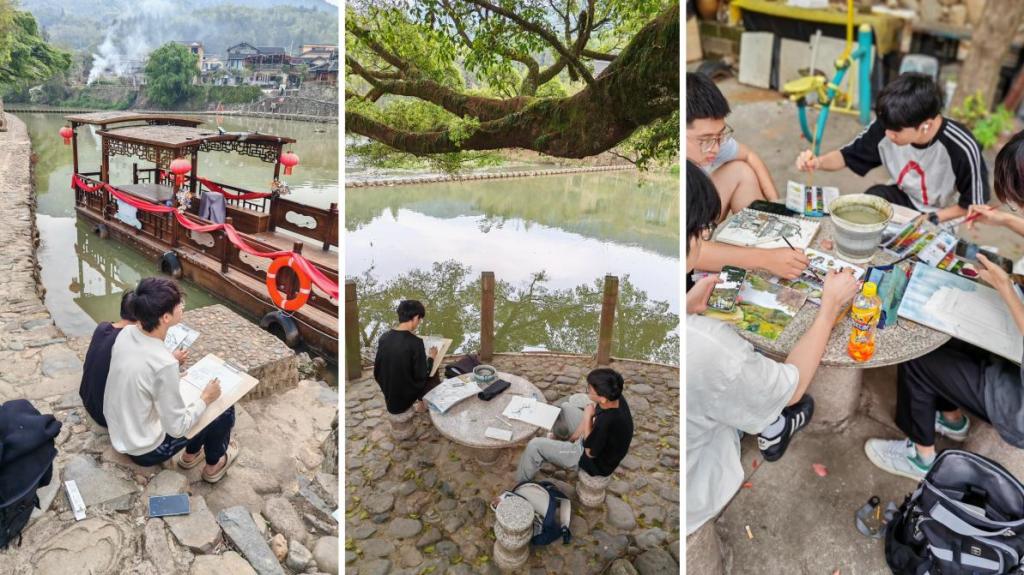 2025年4月7日,tyc7111cc太阳成传播与传媒学院视频传播系2024级动画(产教)1、2、3班师生启程前往福建漳州云水谣古镇,开展为期两周的《设计采风》课程实践。本次采风由视频传播系侯兆丰副教授、胡娜老师、许冰芸老师共同担任指导教师,带领学生深入闽南文化腹地,探寻传统与自然的艺术融合。