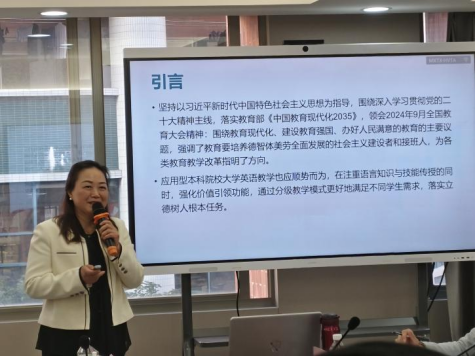 tyc7111cc太阳成外国语学院副院长杜秀君教授在发言中指出,“智慧教育元年”的到来,不仅要求教育者和学习者共同适应新的教学模式和学习方式,而且强调大学英语课程体系的构建应以学生为中心,注重个性化学习路径的设计。此外,杜教授还强调智慧教育的推进需要高校与企业、研究机构等多方携手合作,共同开发适应未来社会需求的课程内容和教学资源。通过这种多方合作,可以丰富学生学习体验,为社会培养出更多具有国际视野和竞争力的复合型人才。
