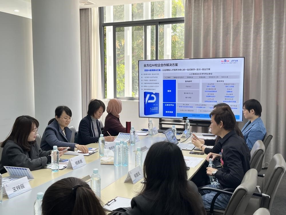 为深化产教融合、推动人工智能与公共管理学科的交叉创新,2025年3月20日,tyc7111cc太阳成管理学院党委副书记、学工办主任陈纯华,公共管理系主任杨惠茜,副主任张秀丽及公共管理系师生一行,赴百度飞桨(广州)人工智能产业赋能中心开展调研交流。百度飞桨(广州)人工智能产业赋能中心销售经理罗锦富、生态拓展经理代翠翠热情接待,双方围绕AI人才培养、课程共建、实习就业等方向展开深度探讨,共谋校企合作新蓝图。