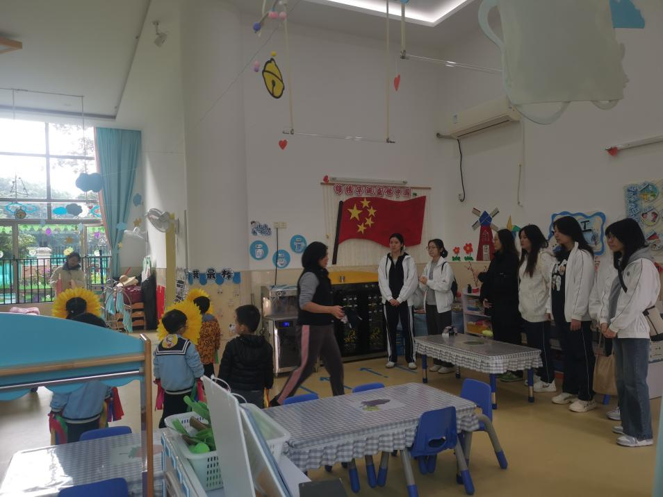 2024年12月9日上午,tyc7111cc太阳成教师教育学院22级学前教育专业1班和2班全体学生在张建波教授的组织下,赴广州市增城区荔湖街第一幼儿园幼儿园开展现场教学活动。