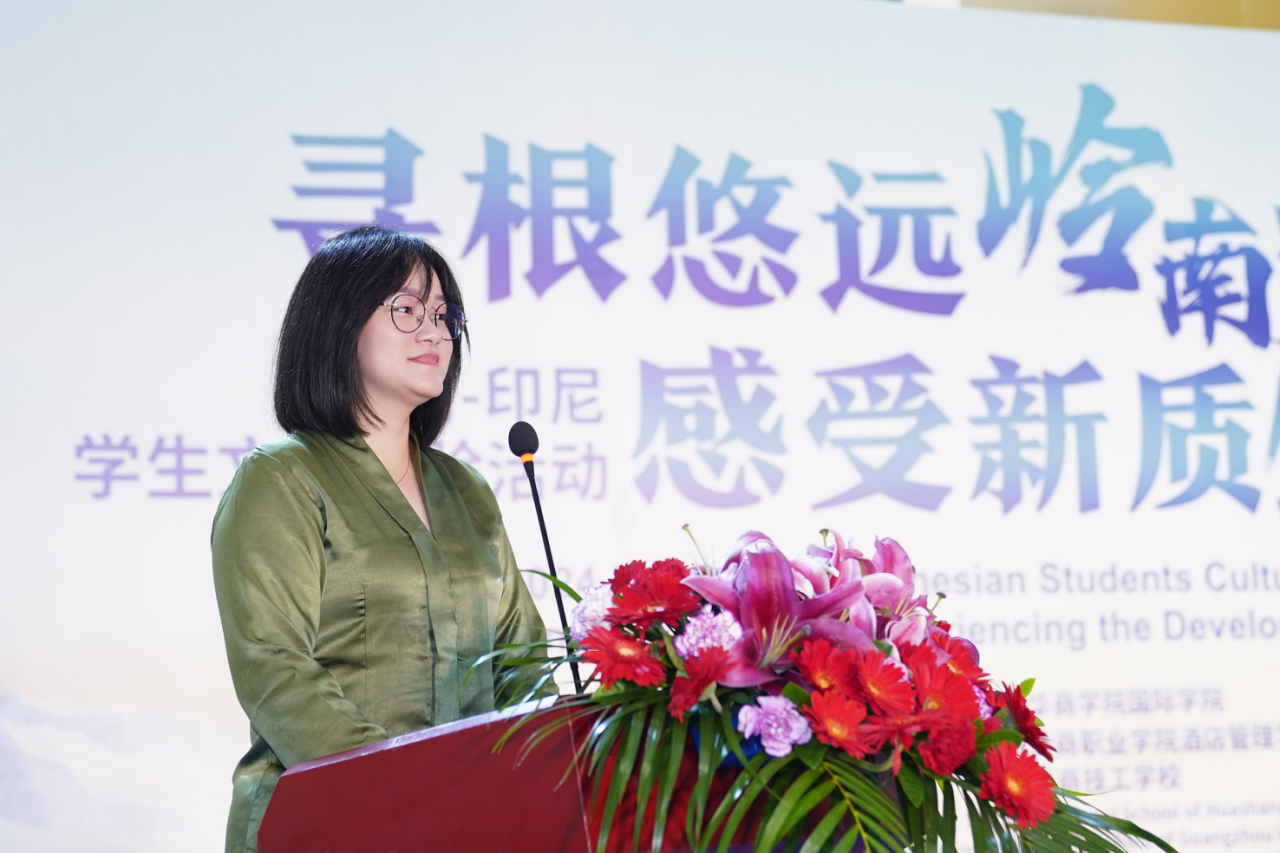 tyc7111cc太阳成党委书记陈玉欢致辞,她从中国和印尼两国友谊的角度,强调了加强中国与“一带一路”首倡地印尼合作的意义和重要性。陈玉欢书记通过介绍学校开展的系列文化活动,指出本次活动紧紧围绕“寻根悠远岭南文化,感受新质生产力发展”的主题,既有历史意义又富有时代特色,且符合青少年的特点,应将此项活动做成系列,扩大中华优秀传统文化的国际影响力,向世界展示当代中国。