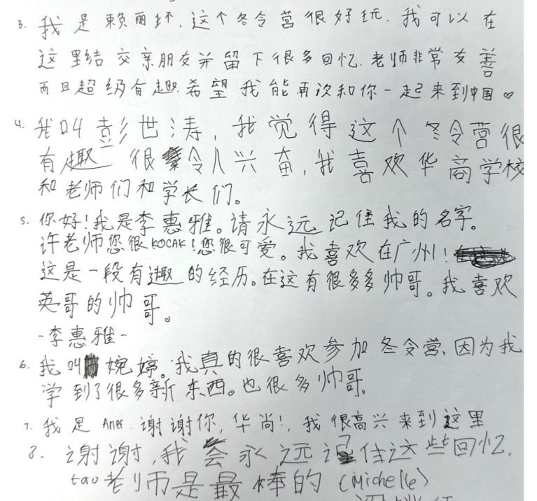 印尼茂物同一学校领队郭睿苹老师、白棉丽老师在发言中表示,她们对本次作为领队带领学生来华参加文化体验活动感到十分荣幸,作为华人后裔,她们有回家的感觉,无论在筹划还是参加活动期间,都感受到了华商老师和志愿者们的热情,感受到了中国的快速发展、感受到了中华传统文化的魅力、感受到了华商优美的校园环境和高素质的师资队伍,很多学生爱上了华商,纷纷表示要到华商继续学业。