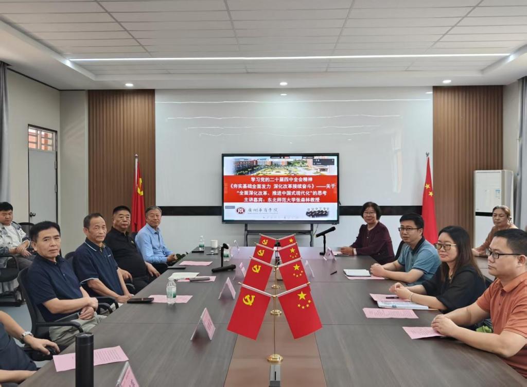 在讲座中,张教授以改革开放的历史进程为主线,系统梳理了党的历次重要会议及其在深化改革中的关键作用,深刻阐释了全面深化改革的时代背景与取得的重大成就。之后,张教授紧密结合党的二十届四中全会公报中提出的“十五五”时期经济社会发展目标,进一步分享了关于“推动全面深化改革实现新突破”的思考;另外,张教授还对中国式现代化的理论演进做了细致解析,阐述了其核心内涵与实践路径,并围绕全会公报中“夯实基础”“全面发力”“深化改革”“接续奋斗”等关键词,深入解读其政策指向与战略意义,进一步加深了与会教师对中央精神的理解。