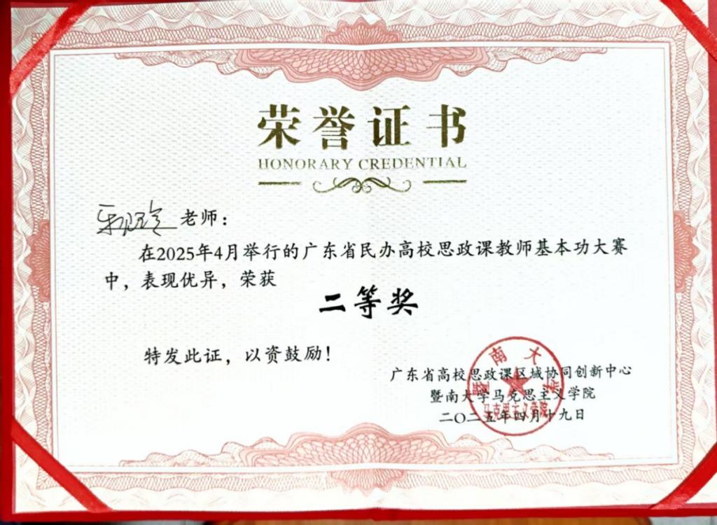 下一条:太阳成集团tyc7111姜波老师荣获2025年广东省民办高校思政课教师基本功大赛一等奖