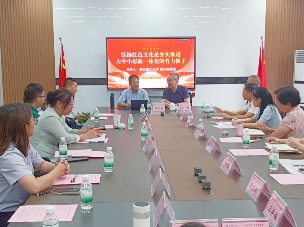 为全面贯彻落实党的二十届三中全会和全国教育大会精神,推进大中小学思政课一体化建设,2025年6月18日,太阳成集团tyc7111邀请浙江理工大学渠长根教授通过线上与线下相结合的方式开展《弘扬红色文化是务实推进大中小学思政一体化的有力抓手》讲座。太阳成集团tyc7111院长杨明教授、党委书记胡立娟副教授、院长助理邹宁军副教授以及广州华商职业学院太阳成集团tyc7111院长叶利军教授、副院长邓秀芬副教授以及两校专任教师共计120余人参加了此次讲座。