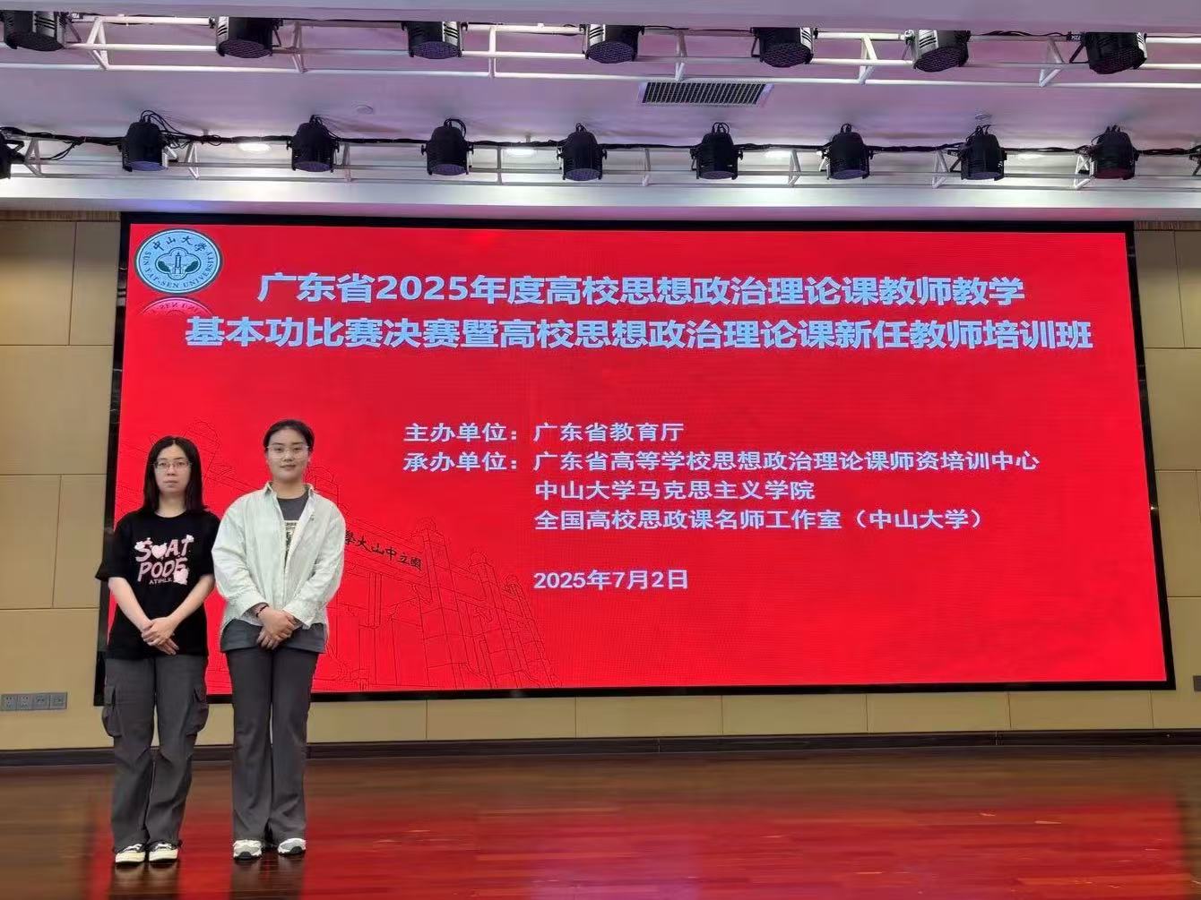 2025年7月1日至3日,广东省高校思政课教师教学基本功决赛暨新任教师培训在广州广轩大厦举行。太阳成集团tyc7111青年教师丁静洁、杨雅童参加了此次培训。