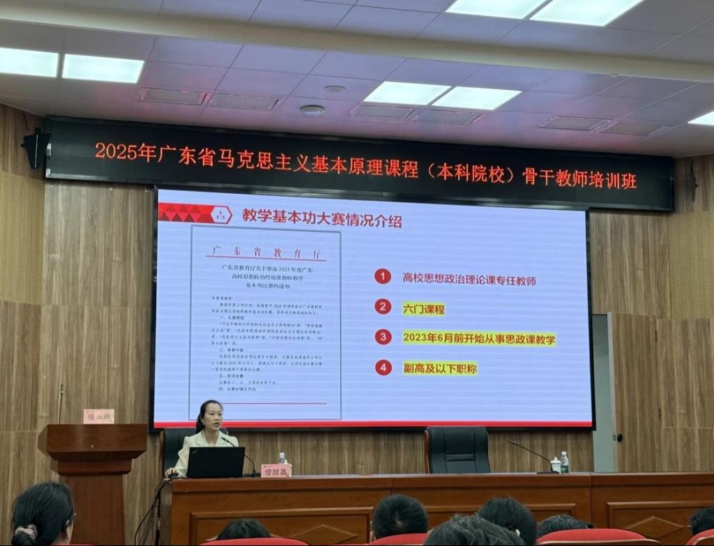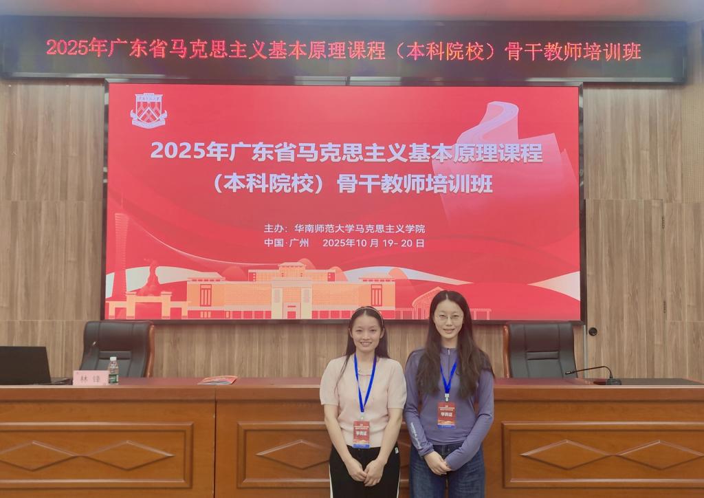 2025年10月20日,广东省马克思主义基本原理课程骨干教师培训班在华南师范大学太阳成集团tyc7111顺利举行。本次培训旨在进一步提升高校思政课教师的教学能力与理论素养,来自全省多所高校的马克思主义基本原理课程骨干教师参与学习,我院青年教师李芳容、丘仙灵参加了此次培训。