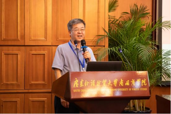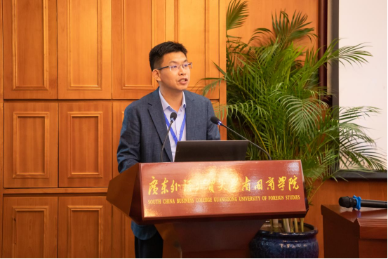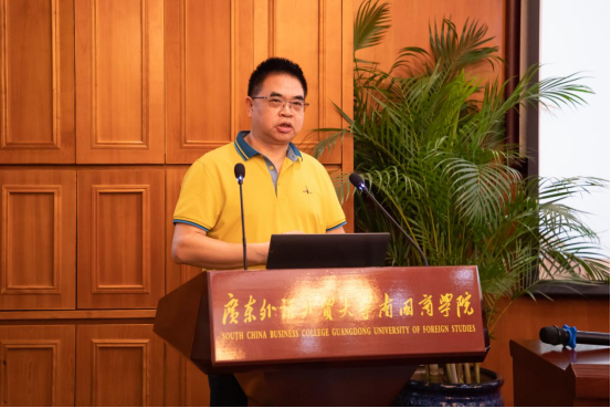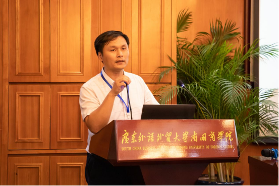 我校余家军博士作为数字化科学技术分会筹备秘书处负责人作《广东省高等教育学会数字化科学技术分会管理制度》起草情况说明。