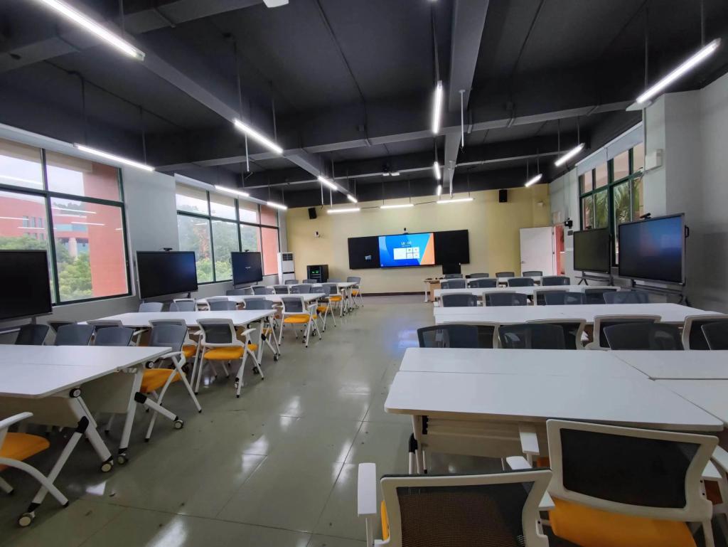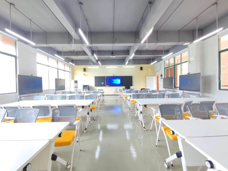 在设备升级与教室改造方面,学校对早期建设的31间实验室老旧设备和部分教学系统进行了更新,从而保障了教学质量。其次,对同声传译实验室进行升级改造,更换木地板与损坏家具。其次,为推动学校课堂教学模式改革,助力我校硕士点建设与一流课程建设,学校在励志楼另建设了10间智慧教室,建成后可实现教学多屏互动、能效管理、数据自动采集等功能,为师生提供积极有效的教学实验环境,能有效激发学生积极探索、积极互动、消除师生“上下级”界限感,从而真正提升课堂教学质量。