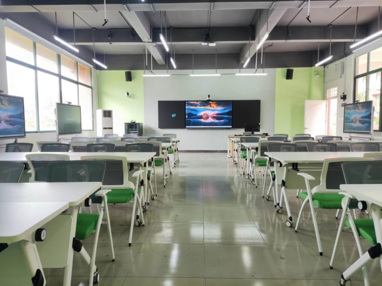 新学期,增城校区完成了31间实验室旧设备的更新、同声传译实验室、励志楼10间智慧教室的升级改造,以及90间教室电子班牌的投入使用,师生们在优美的校园环境中开启新征程。