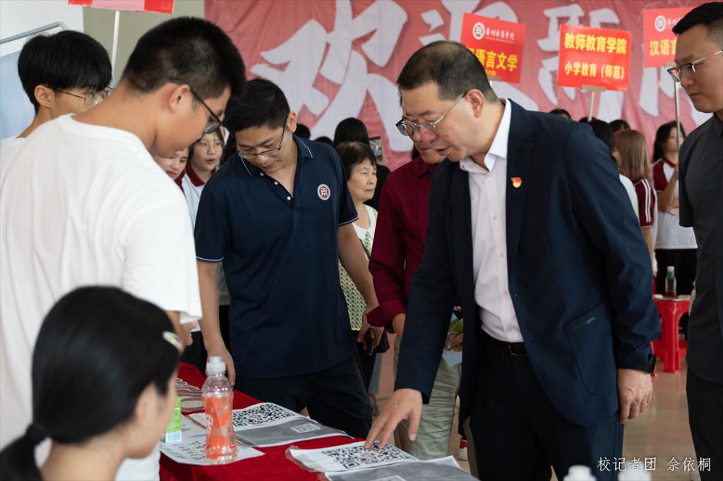 9月10日,我校文学院、外国语学院、传播与传媒学院、珠宝学院、创意与设计学院以及教师教育学院在四会校区开展迎新工作。执行校长郭银华,副校长王锦秀、吕峻闽莅临迎新现场,进行工作指导并慰问现场工作人员和学生志愿者。