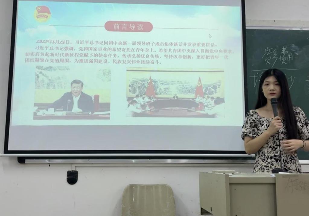 为切实肩负起新时代新征程党赋予的使命任务,充分激发广大青年在中国式现代化建设中挺膺担当。金融学院团委于9月17日、23日分别在四会校区8号楼401、增城校区行政楼311开展“学习习近平总书记同团中央新一届领导班子成员集体谈话时的重要讲话精神 ”主题团课。本次团课,团委书记张文杰、副书记赵颖桢介绍习近平总书记“引导青年立大志、明大德、成大才、担大任,实现青春梦想”的良苦用心以及近些年来的改革措施,引领同学们在切身体验新时代伟大变革中,深刻感受习近平总书记的坚定信仰信念,深化对习近平新时代中国特色社会主义思想的学思践悟。