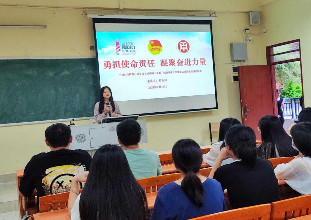 为深入学习贯彻习近平总书记关于青年工作的重要思想,加强对青年政治的引领作用,动员广大青年在全面建设社会主义现代化国家进程中建功立业,文学院团委于双校区同步开展学习习近平总书记同团中央新一届领导班子集体谈话时的重要讲话精神主题团课。文学院团委书记王怡荻、副书记何锦浩、学生会指导老师丘淳苑分别在增城校区、四会校区进行授课,学院团委委员、部门负责人、学生骨干代表参加了本次团课。本次学习会激励同学们培养良好的奋斗精神,养成良好的学习习惯和态度,立志做有理想、敢担当、能吃苦、肯奋斗的新时代好青年,让青春在全面建设社会主义现代化国家的火热实践中绽放绚丽之花。