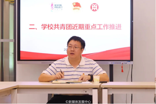 随后,他从八个方面部署学校共青团近期重点工作。第一,针对学院团学工作、青年工作开展阶段性总结梳理,查摆问题。第二,高度重视本学期团员发展工作,夯实团的基础,加强团的组织建设。严格按照《中国共产主义青年团章程》《关于加强新形势下发展团员和团员管理工作的意见》中的有关规定,积极地、有计划地发展团员。第三,扎实推进共青团促进大学生就业行动,开展“职引人生,筑梦启航”团组织生活会,加强宣传引领,提高学生的就业意识,引导学生树立正确的就业观。第四,持续推进学社衔接,持续推进团的基层组织规范化建设,着力提升团的组织力、引领力、服务力,推动团的各项工作再上新水平。第五,落实团代会召开筹备工作,做好我校共青团工作的阶段性总结及规划。第六,持续深化大学生社区实践计划,校院两级团委共建项目,鼓励学生走进社区、服务群众,引导广大青年在实践中担当时代使命、提升能力本领,助力“百县千镇万村高质量发展工程”。第七,继续完善我校共青团系统及制度建设,落实例会及理论学习,提升工作效率;第八,严抓新生团支书的培训工作,加强团学骨干队伍管理,强化团员先进性建设,深化高校共青团工作研究,不断提升团的组织力、引领力、服务力。