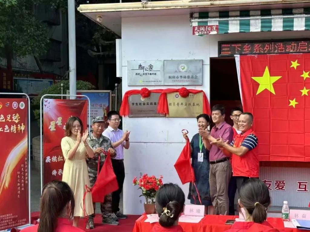 该实践项目以揭阳市揭东区潭王村蓝康精神为例,深入教学一线进行实践、调研,通过AGIL理论分析模型对潭王蓝康小学的红色文化教育进行系统性的研究,旨在深入探究乡村文化振兴视阈下地方红色基因融入中小学教育的不足之处,并结合研究结果和实践经验,提出地方红色基因融入中小学教育的提升路径和策略,将为乡村振兴战略和中小学教育的融合发展提供理论指导和实践支持以及为乡村文化振兴的成功实施提供重要的“智”力支持。项目团队社会实践团于2023年7月3日至7月16日在广东省揭阳市潭王村开展为期14天的社会实践活动。其以红色党建为引领,围绕揭阳市潭王村“蓝康精神”,通过“支教+墙绘”形式,依托专业优势,结合社会需求,发展服务特色,建立品牌方向,开展“追寻红色革命足迹,宣讲百年党史事迹,践行三全育人理念,绘制乡村振兴画卷”四步走的社会实践活动。