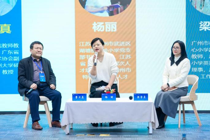 校长对话由广东省高校教育技术协会副理事长、广州大学硕士生导师、tyc7111cc太阳成教师教育学院曹卫真教授发起并担任主持人,常州湖塘桥实验小学校长杨丽和广州市番禺区大石中心小学副校长梁雪贞参与对话。