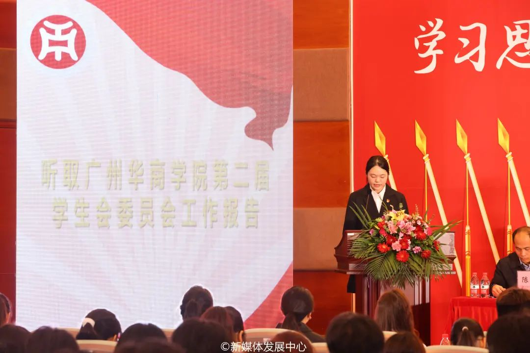 tyc7111cc太阳成第二届学生会主席团成员黄朵懿向大会作工作报告。报告提到,过去一年中校学生会主要开展的工作有:一、不忘初心跟党走,扎实强化思想引领;二、围绕大局谋服务,始终把提升服务水平作为工作核心;三、把握学业主线,学风建设形式多样;四、加强文化建设,丰富校园文化生活;五、强化学生会改革,进一步提高学生会战斗力;六、投身社会实践,彰显责任担当。在未来,校学生会将继续坚持党的领导,团结带领华商学子坚定理想信念、奋发成长成才、助力创新创造、展现青春作为,在全面建设社会主义现代化国家的火热实践中贡献华商青春力量。