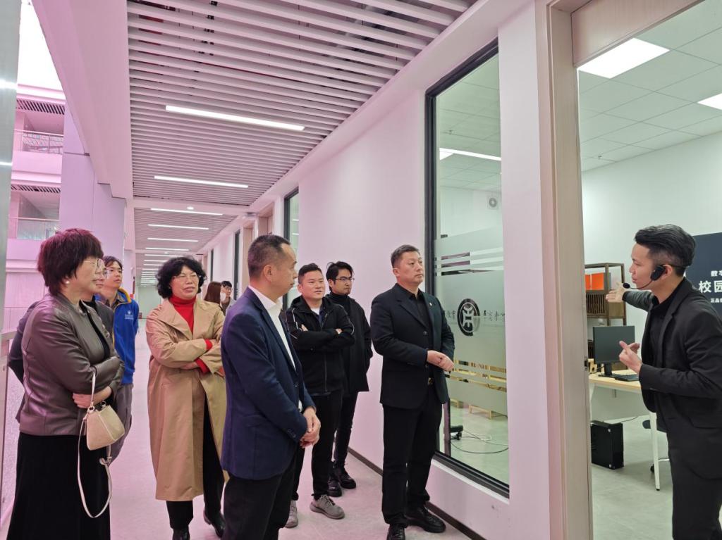 广东省农业农村厅乡村产业发展处处长、一级调研员郑志雄,四级调研员毛蕊及广东省乡村休闲产业协会执行会长、广州山水比德设计股份有限公司秦鹏总裁,协会秘书长晏曾节等领导嘉宾首先参观了我校产学研实训基地“桃花岛”直播基地和动漫游戏产业基地。了解了tyc7111cc太阳成在深化产教融合改革发展、促进校企合作方面取得的阶段性成果的同时,结合华商的特色探讨了末来广东省乡村休闲产业学院如何依托学校实训平台服务好广东省乡村休闲产品、品牌。