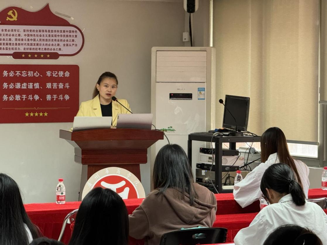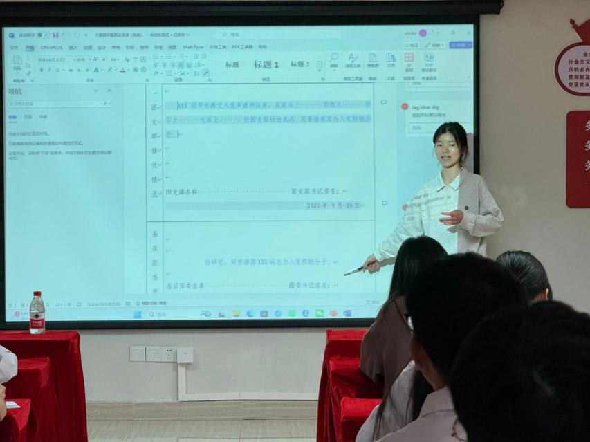 随后,党工委学生骨干李诗灵同学根据《中国共产党发展党员工作细则》和《发展党员工作手册》,结合学校党建工作实际,对我校党员发展工作进行专题介绍,对发展党员全过程材料做出详细讲解,并解答各支部在工作中遇到的问题。