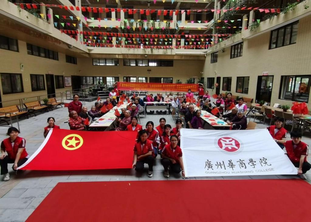 四会市春晖优品养老中心为我校团委、教师教育学院团委颁发“弘扬雷锋精神 传递爱心力量”锦旗,以表达对华商青年志愿者志愿服务的肯定与支持,以及温暖老人内心的善行善举的感谢。