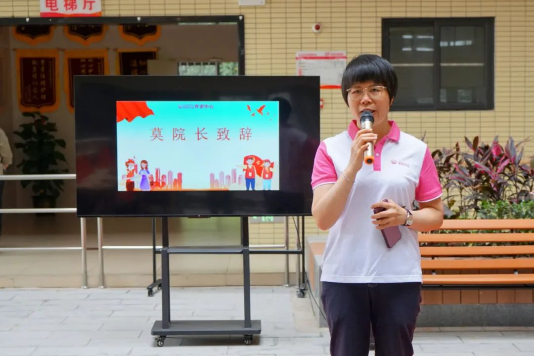四会市春晖优品养老中心莫希璇院长介绍养老中心的基本情况,并对华商师生志愿者们的到来表示欢迎与感谢。她鼓励同学们积极参与社会实践,为和谐社会做出青年贡献。