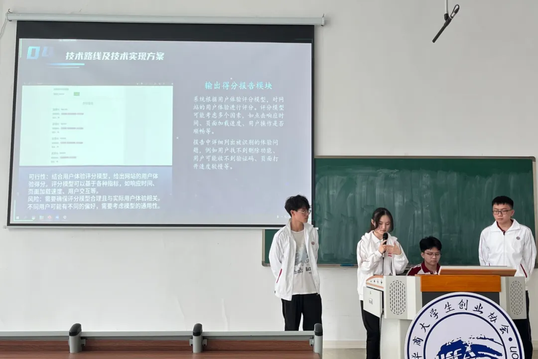 比赛现场,评委团认真地听取了各项目团队的汇报,从项目内容的可行性、方案的创新性、路演表现等方面对参赛团队进行评分。