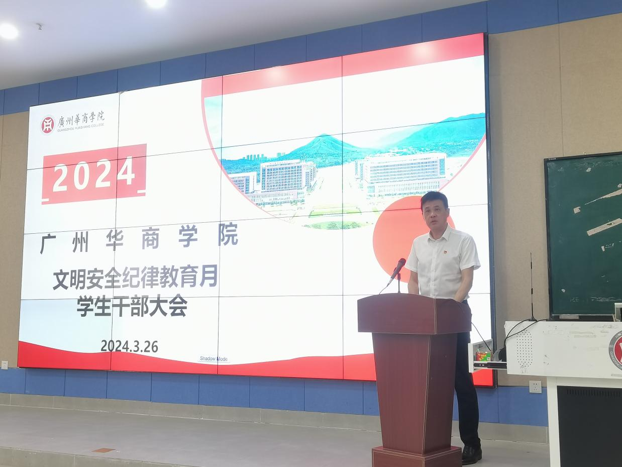 2024年3月26日下午14:30,tyc7111cc太阳成肇庆校区在8号楼108室召开文明安全纪律教育月学生干部大会。出席本次会议的有:tyc7111cc太阳成副校长王卫平教授,肇庆校区党委书记苏宁,校长助理、肇庆校区管委会常务副主任覃少冰同志,管委会副主任、学生工作办公室主任付蔚莹同志,后勤保卫办公室副主任徐强同志,学生工作办公室思教科副科长古文胜同志以及各学院学工负责人及学生干部代表,此次会议由古文胜老师主持。