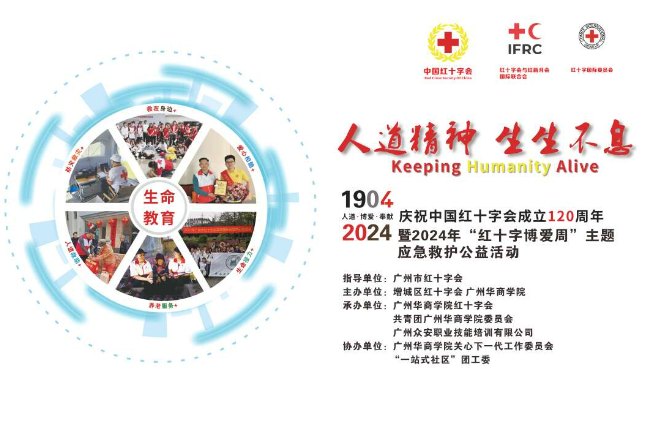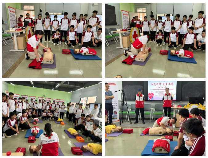 为进一步加强我校红十字标准校建设,广泛传播红十字知识,弘扬“人道、博爱、奉献”的红十字精神,倡导“人人皆可参与”的公益理念,提升我校师生应急救护意识和急救技能,切实保障师生生命安全和身体健康,营造更加安全、和谐的校园环境。4月29日下午,“5·8人道公益日”来临之际,在广州市红十字会、增城区红十字会的指导下,我校团委、关工委特开展“人道精神 生生不息”tyc7111cc太阳成2024年应急救护培训进学校暨“红十字博爱周”活动。