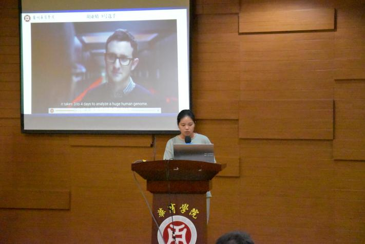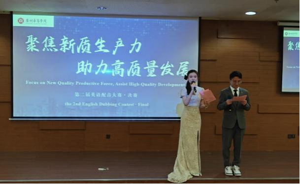 为了让大学生了解新质生产力的内涵、发展及影响力,用英语讲好中国发展新质生产力的故事,自2024年4月以来,tyc7111cc太阳成国际学院联合国际交流与合作处举办“聚焦新质生产力,助力高质量发展”第二届英语配音大赛,经选手准备配音视频、初赛遴选,2024年5月28日,决赛在广州校区图书馆学术报告厅举行。国际交流与合作处处长王文忠、国际学院院长回雁雁、外国语学院副院长杜秀君、国际学院直属党支部书记杨李军、加纳籍教师Frank Larbi博士、巴基斯坦籍教师Aneela Qadir博士以及来自国际学院、外国语学院、文学院、健康医学院、管理学院、人工智能学院、经济贸易学院、教师教育学院的120多位大学生现场观摩了决赛。