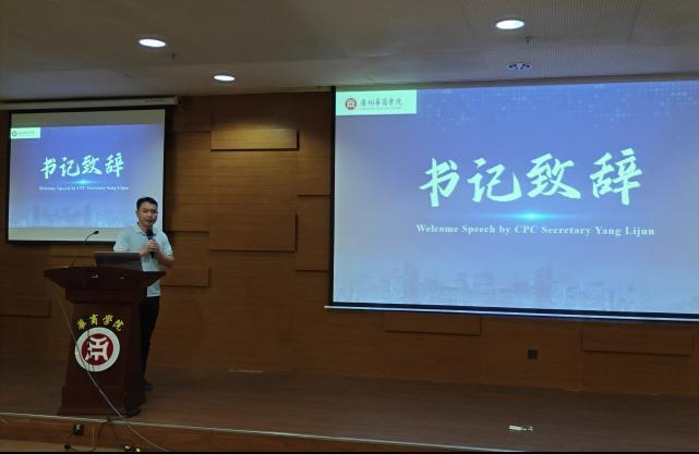 国际学院直属党支部书记杨李军致辞。他表示,这次比赛有助于大学生在了解“新质生产力”及“高质量发展”的内涵的同时,提升英语水平、拓宽国际视野,展示当代大学生的青春活力。